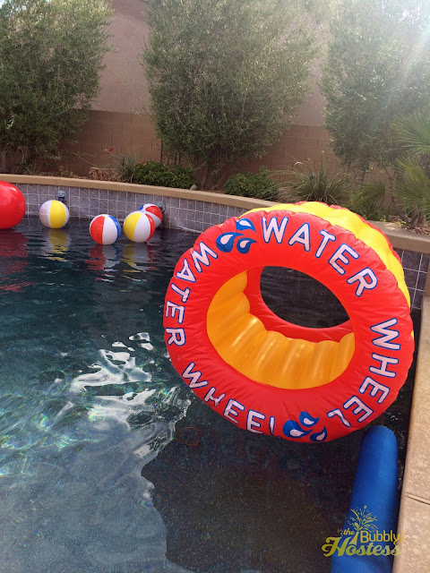 My son really thought the "Pool Water" was pretty cool at his little brother's Birthday Pool Party earlier this summer - so we did the same only calling it "Wipeout Water" instead.
