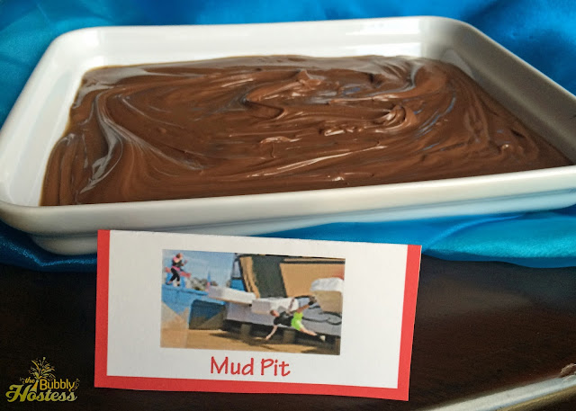 The party was at 11:00 a.m. so decided to serve snacks and lunch. He wanted to serve Crockpot Chicken Tacos along with chips, salsa, and guacamole. But for the fun stuff? We decided to use Pretzel Rods to represent the Wipeout "Sweeper Bars" alongside a platter of Nutella as a "Mud Pit" for dipping. He confirmed that there would be a spoon in the Nutella to ensure we didn't have any "double dipping".